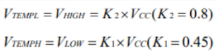 The temperature range to be set is independent of the power supply voltage Vcc and only depends on R1, R2, RTH, and RTL.