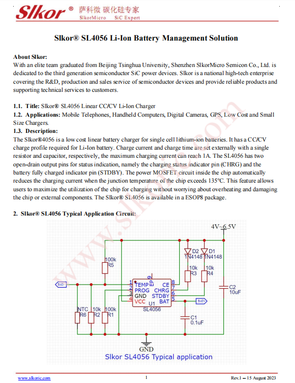 Slkor? SL4056 Li-Ion Battery Management Solution(一)