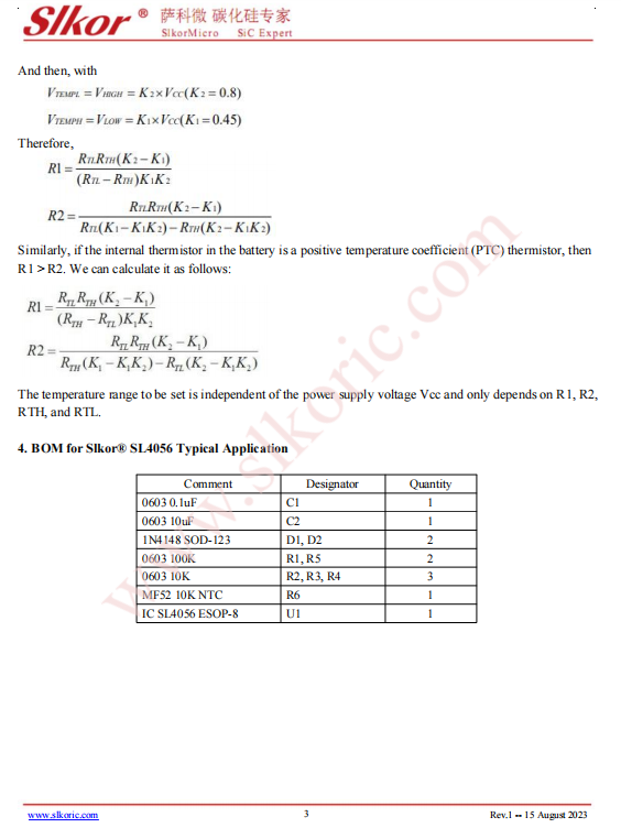 4. BOM for Slkor SL4056 Typical Application