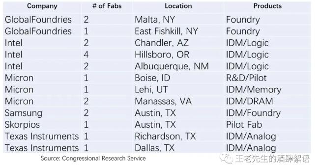 Domestically, six companies operate 20 300 mm fabs in eight states, as detailed in the table below. In addition to Skorpios, five other companies also operate wafer factories outside the US.