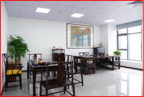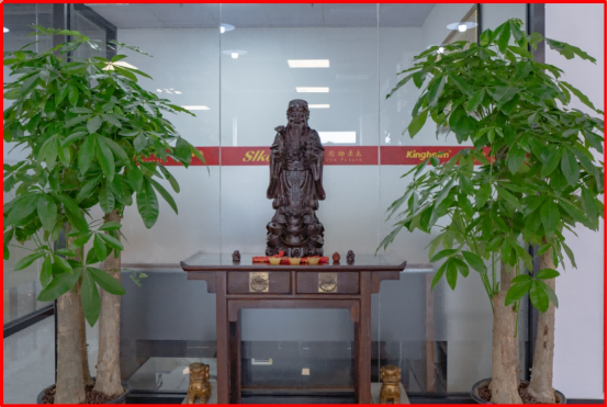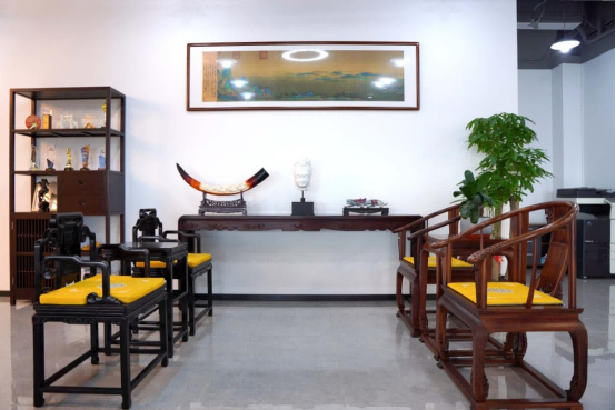 The central hall, a symbol of honor and hospitality in Chinese culture, features Ming-style redwood furniture—simple yet noble. As Mr. Song noted, “Kinghelm and Slkor strive to create a simple, harmonious, and progressive work atmosphere where everyone can work happily and attract good fortune.” A serene Northern Qi-era Buddha head, carved from fine white marble from Sichuan, graces the hall, infusing the space with peace and spiritual calm.