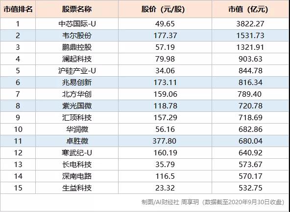 截至9月30日收盘,这四家公司总市值达3748.89亿元人民币,约占A股半导体上市公司总市值的13.88%。