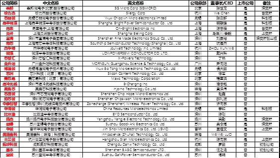 八、30家国产电源管理芯片和功率半导体厂商基本信息