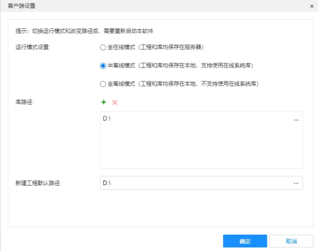 Full-online mode: supports setting the online project backup path, and the editor will backup the project compressed package in this folder according to the set backup interval.Semi-offline mode/all-offline mode: support setting library paths and adding multiple library paths; Support setting the default storage path for new projects.