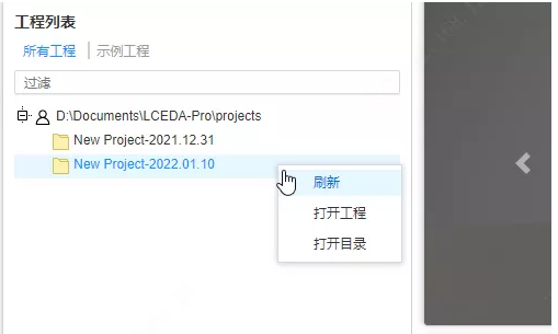 You can also open the project in the project list on the left. Opening the client will automatically load all the projects under the project path, or you can right-click to refresh the project list.
