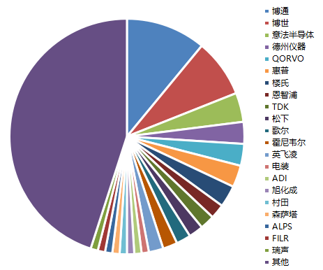 From the perspective of the number of competitors, there are many MEMS sensor types and manufacturers. In 2019, China's MEMS market is mainly dominated by foreign manufacturers, with Broadcom and Bosch neck and neck, while other major competitors include STMICROELECTRONICS, Texas Instruments, Qorvo, etc.