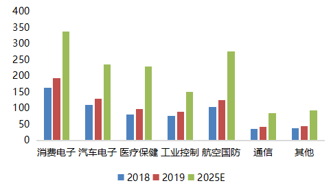 From the perspective of application terminals, driven by the Internet of Things and 5G replacement of mobile phones, the global consumer MEMS market size is expected to grow from $6.87 billion in 2019 to $11.14 billion in 2025, according to Yole's prediction. The automotive MEMS market is expected to grow from $2.18 billion in 2019 to $2.6 billion in 2025, with a 3% CAGR, driven by increased penetration of smart vehicles. In addition, the industrial, medical, communications, defense and aviation sectors of the market demand is also rising.