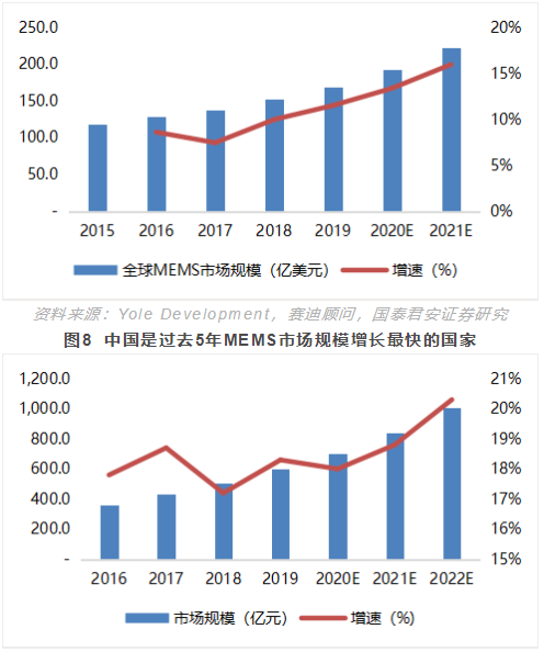In terms of product structure, the top five MEMS sensor segments in the world are rf, pressure, microphone, accelerometer and gyroscope, accounting for nearly 65% of the total. This order for the Chinese market is rf, pressure, microphone, inertia and accelerometer, similar to the global market.