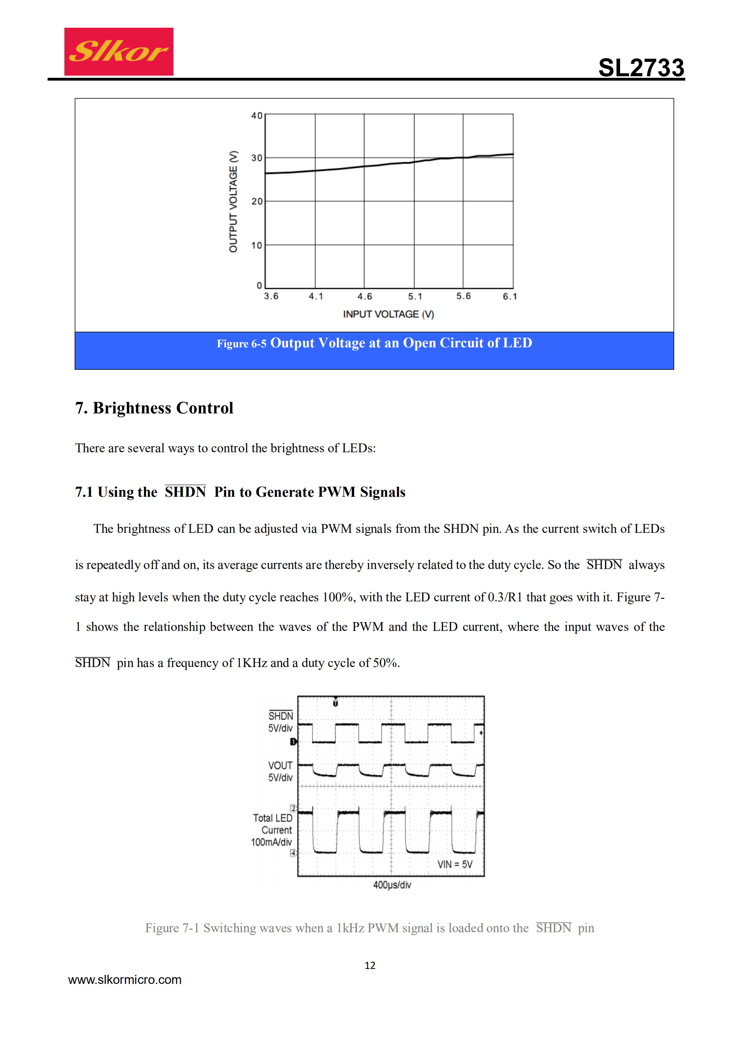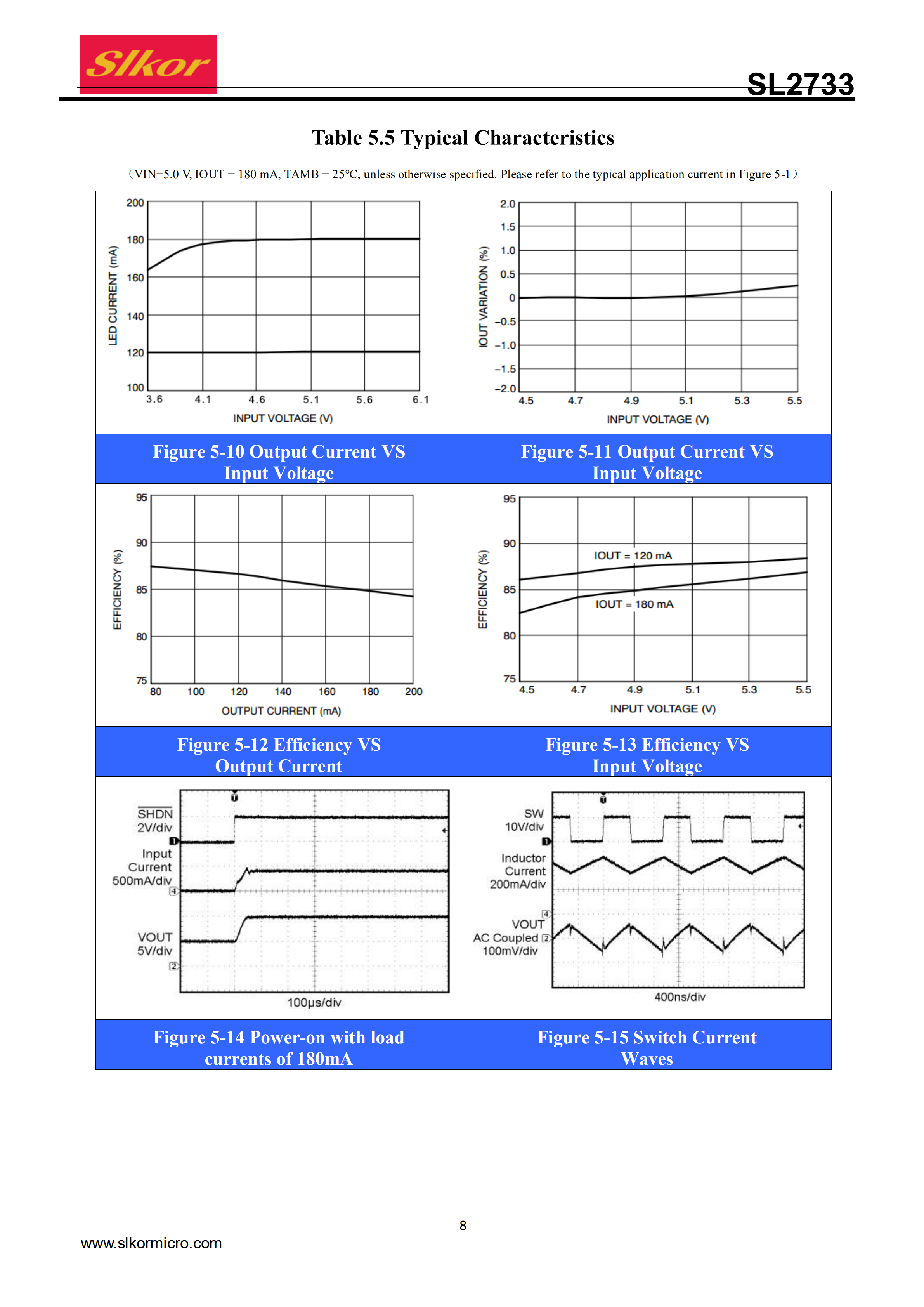 The SL2733 is a DC/DC boost converter that can provideconstant and precise drive currents for multiple LEDs synchronously. With a fixed switching frequency of 1MHz, the SL2733 can be used with external ceramic capacitors and inductors with small consumption. Also, the SL2733 can drive multiple LEDs connectedin series via an adjustable current set by an external resistor R1. And the SL2733 might prove most useful in driving LEDs of the same type, with 9 white LEDs at most connected in series simultaneously, or driving LED brightness adjustment of up to 32 volts through one DC voltage, one logic or pulse width modulation (PWM) signal. What’s more,the(SHDN)allows the device tooperate in power-down mode with extremely low quiescent current. So in addition to thermal shutdown and overload current limit, it can also turn its chips, available in SOT23-5 small outline package, into ultra-low power consumption mode in the event of an open-circuit failure in LED.