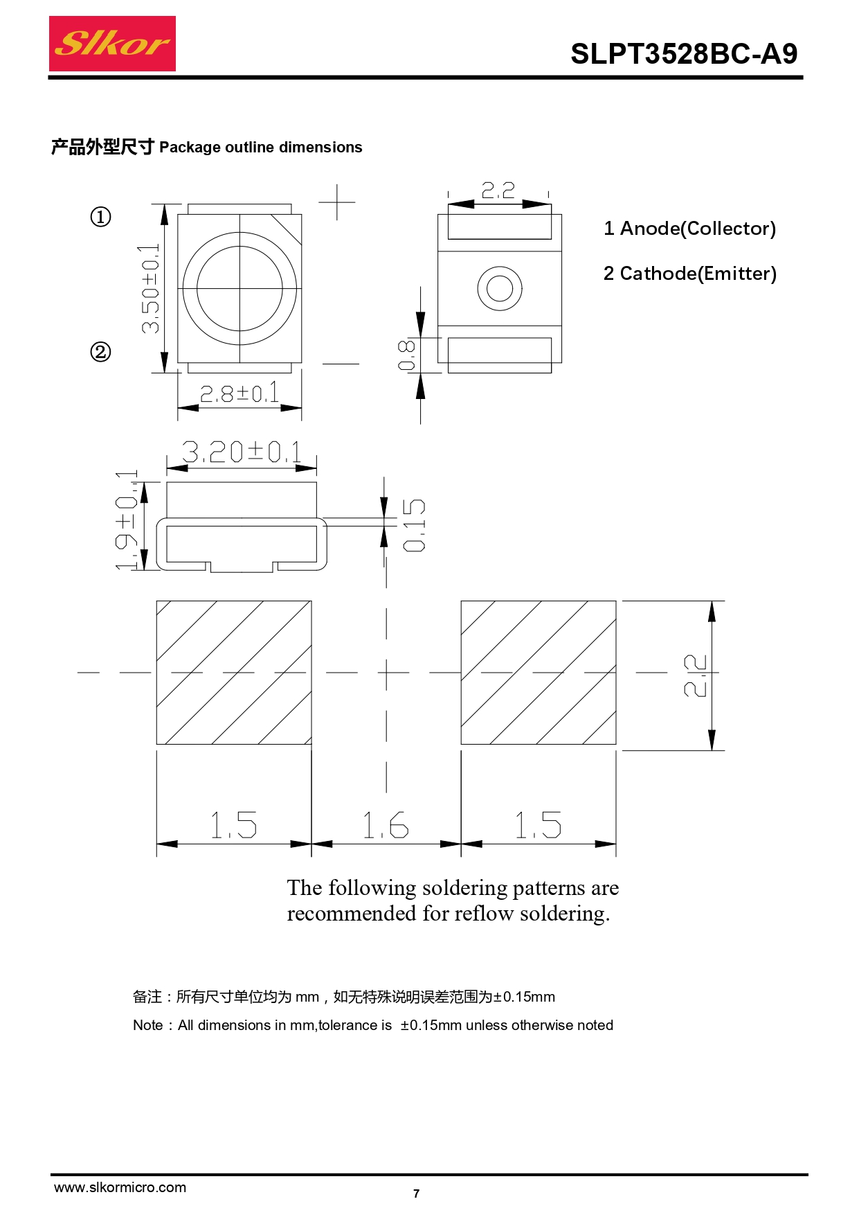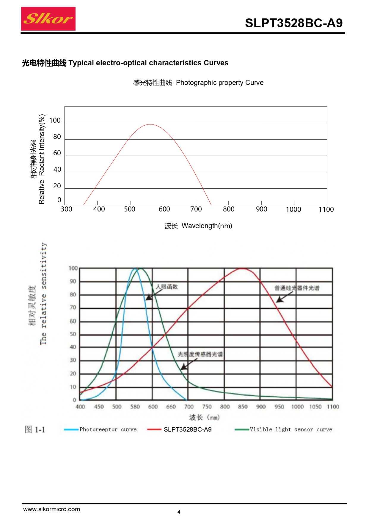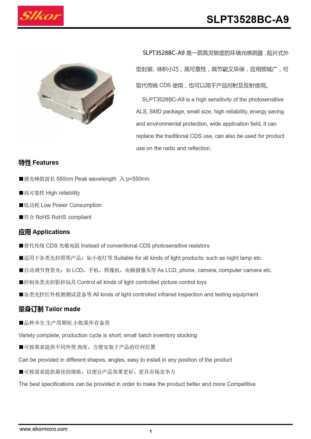 SLPT3528BC-A9 infrared LED is a high sensitivity of the photosensitive sensor, SMD package, small size, high reliability, energy saving and environmental protection, wide application field, it can replace the traditional CDS use, can also be used for product use on the radio and reflection.